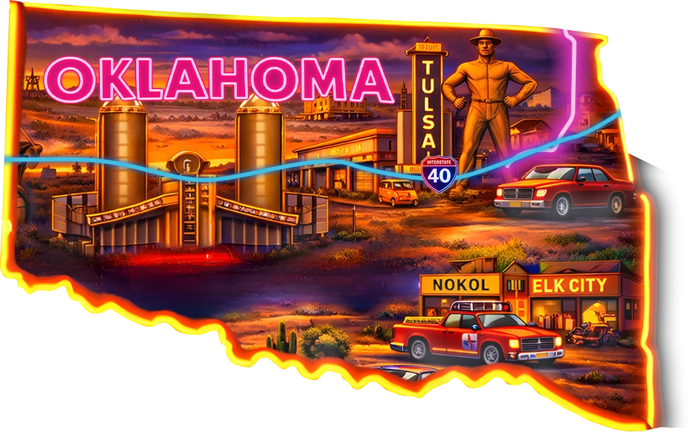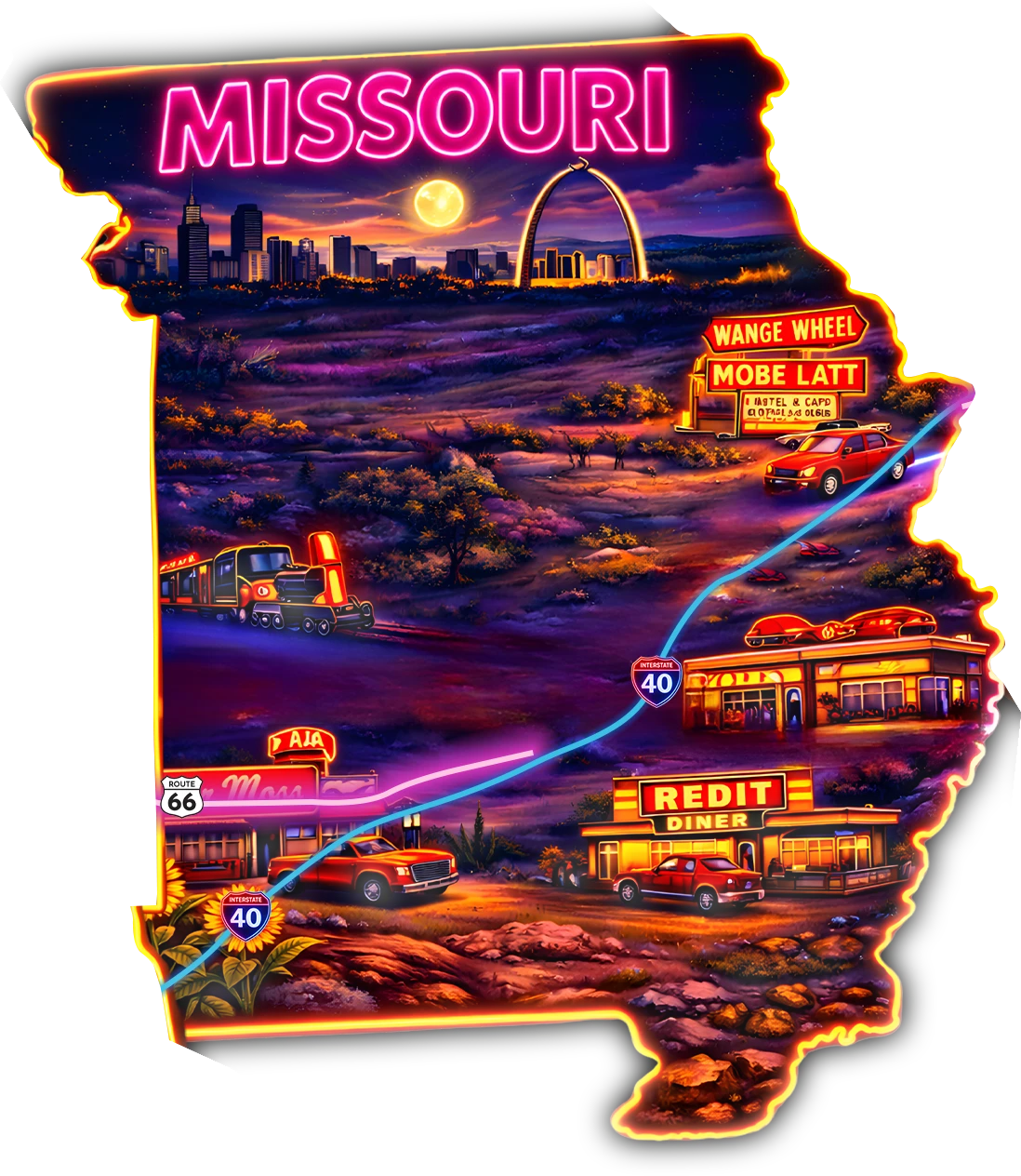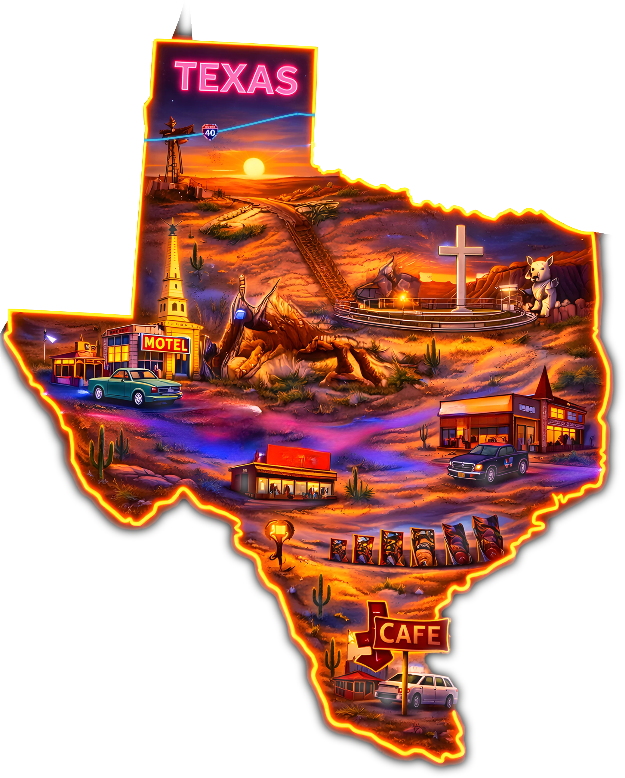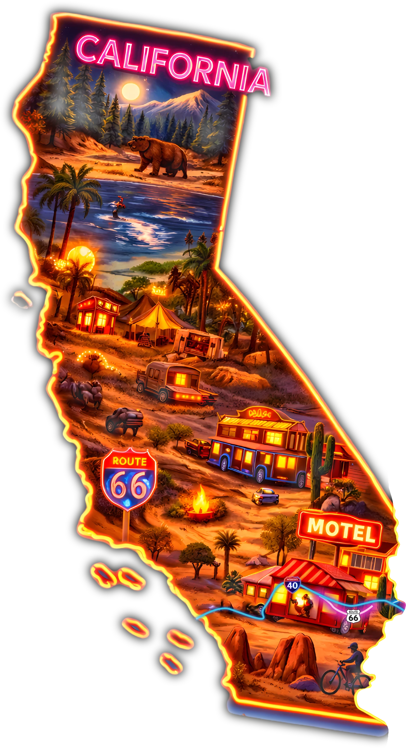Click any state on the map to explore its Route 66 heritage — iconic landmarks, classic diners, charming towns and must-see stops along the Mother Road.